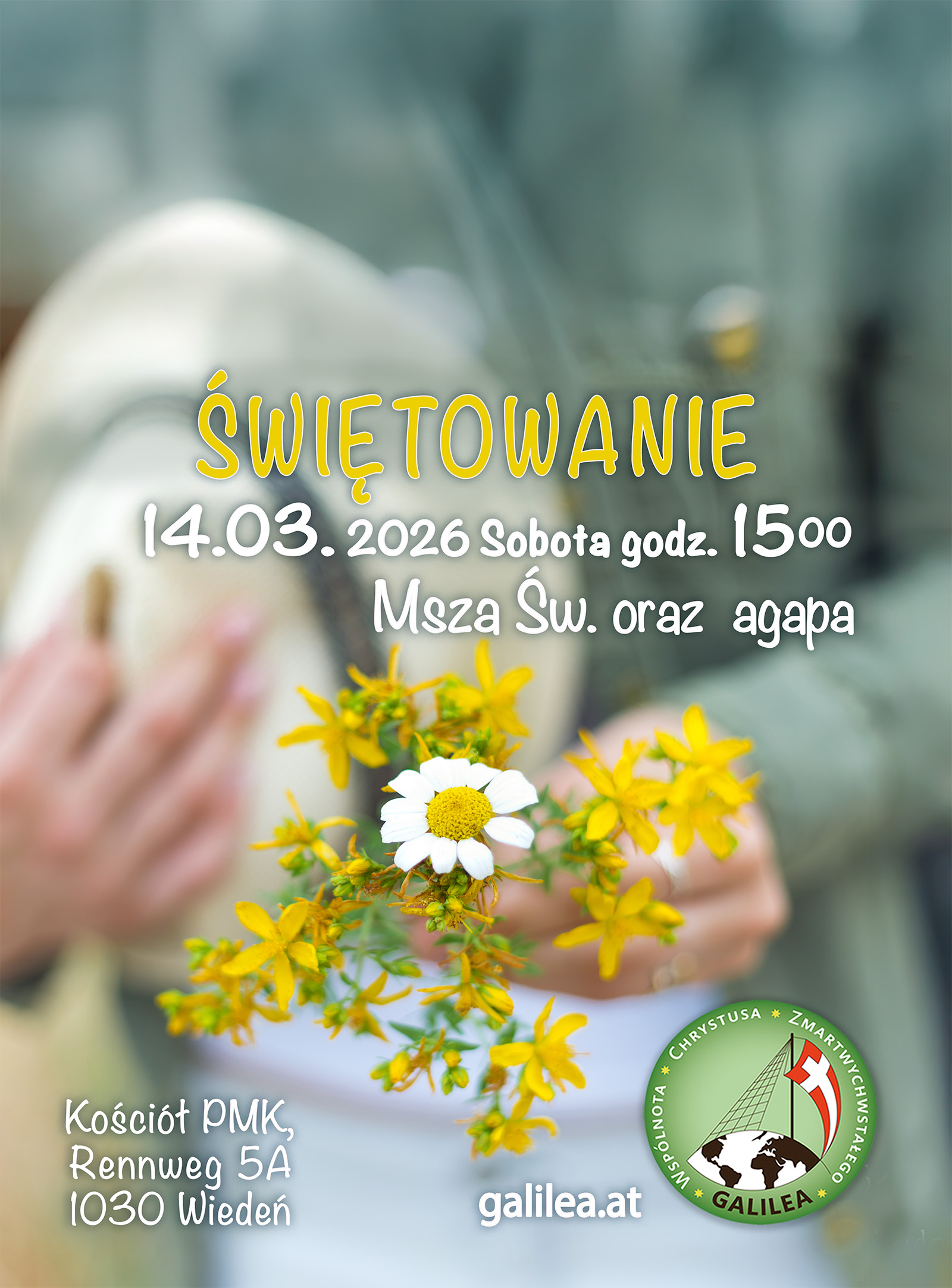 Zapraszamy Cię serdecznie na 15:00 do kościoła a potem do Emaus.